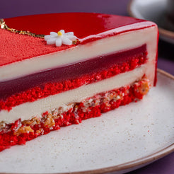 Red velvet cake | Raspberry confit | Mascarpone mousse Contains dairy, eggs, lactose, and gluten.